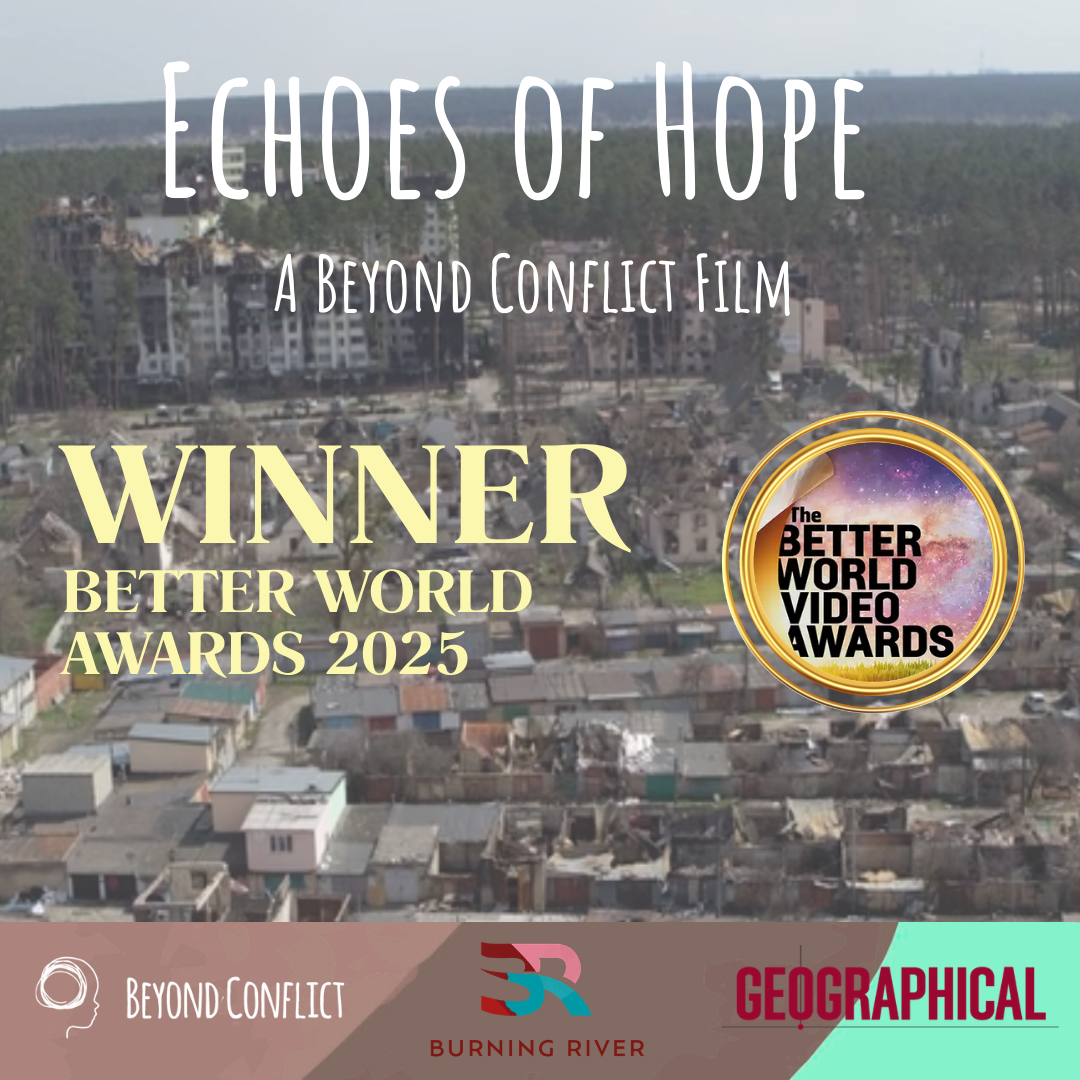 “Echoes of Hope is a powerful, heart-warming film that tells the story of Beyond Conflict and the work they do with partners around the world to bring hope to people living in conflict zones. It was an honour to work on this project, and an even greater honour to see Echoes of Hope recognised by Geographical Magazine and the Better World Awards.”